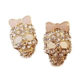 Crystal PINK Bow Skull Stud Earrings - Top Seller: Jewelry.