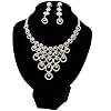 Dazzling Hematite and Clear Crystal Cha Cha Bib Necklace and Drop Earring Set: Jewelry. The silver tone bib style necklace will shimmer as the clear crystals hit the lights. Stand out in a room with this blinged out Hematite and Crystal Cha Cha Necklace and Earring Set. Elegant with a pair of jeans and a T or that little black dress this glitzy set will rock your look.