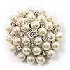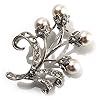 Delicate Faux Pearl Bridal Floral Brooch (Silver Tone)