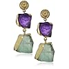 Devon Leigh Blue Quartz in 24k Foil Earrings: Jewelry. Complemented by 24k foil metal detailing, these enticing blue quartz gemstones sparkle with fixating pleasure. Elevate your fashion game to a new level with these Devon Leigh Blue Quartz Foil Earrings.