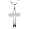 Diamond Cross Pendant in Stainless Steel with .01ct Genuine Diamond including 24 inch Stainless Steel Curb Chain: Jewelry