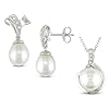 Diamond and Sterling Silver Infinity Flower Earring and Pendant Set with White Freshwater Drop Pearls: Pearlzzz: Jewelry