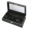 Diplomat 31-445 Carbon Fiber Eighteen Watch Case with Black Suede Interior Watch Case: Watches. The interior is made of ultra soft black suede, so you can rest assured that your possessions will not get ruined. This elegant watch and jewelry storage case is specifically designed to keep your most prized possessions in a safe and luxurious case. The case is capable of holding 18 watches. The watch tray is completely removable so this box can also be used as a simple jewelry chest as well. The outside of this case is lined with a carbon fiber pattern material. Whether you display it as a beautiful piece of furniture or simply take it on the go, this is the perfect watch case for you.