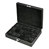 Diplomat 31-448 Carbon Fiber Twelve Watch Case with Black Suede Interior Watch Case: Watches. The interior is made of ultra soft black suede, so you can rest assured that your possessions will not get ruined. This elegant watch and jewelry storage case is specifically designed to keep your most prized possessions in a safe and luxurious case. The case is capable of holding 12 watches. The watch tray inside is completely removable so you can remove the tray and use this case as a jewelry chest. The outside of this case is lined with a carbon fiber pattern material. It also has a see through top making this case perfect for displaying your beautiful watches. Whether you display it as a beautiful piece of furniture or simply take it on the go, this is the perfect watch case for you.
