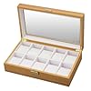 Diplomat 31-57520 Natural Wood Finish with White Leather Interior 5 Watch Case: Watches. The lid is inlaid with a Lucite window for viewing your timepieces and is attached by two brass hinges. Display your timepieces in this elegant Diplomat watch case chest. This handcrafted natural wood finish chest will hold a total of 5 of your finest watches. The interior is lined with a soft white leather and each compartment comes with a removable cushion. This chest has 5 watch compartments with holders. This Diplomat luxurious chest is a safe and secure way to display your most valuable timepieces.