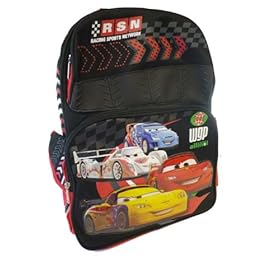 Disney Cars 2 Mcqueen World Grand Prix Large Backpack Bag: Toys & Games. Main double zip large backpack with 2 front zip pockets. Measures 16x12x4. Large size. Adjustable padded straps with small handle.