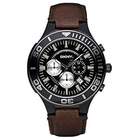 DKNY Chronograph Mens Watch NY1455: Electronics. Chronograph. Stainless steel case. Black dial. Leather strap. Date. Water resistant 30 meters.