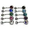 Lot of 10 Double Gem Real Cubic Zirconia CZ Crystal Belly Navel Rings - 10 Colors, Gauge 14g or 1.6mm, Length 7/16 inch or 11mm: Jewelry. They are 14G (1.6mm) and the length of the wearable bar is 7/16 inch (11mm). You are buying a lot of 10 Belly Rings. They are curved Double Gem Cubic Zirconia Crystal Belly Navel Ring. They are made of Nickel Free Grade 316L Surgical Steel. Top Ball size is 5mm and the bottom ball is 8mm.