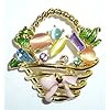 Easter Sunday Pastel Spring Flower Bouquet Rhinestone Woven Basket Pin Brooch: Jewelry