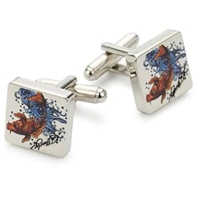 Ed Hardy Koi Fish inch Mens Base Metal Tattoo Cufflinks With Logo 0.63 : Jewelry. With chunky chains and trendy oxidized detailing, Ed Hardy jewelry is anything but delicate. Renowned tattoo artist Don Ed Hardy started his jewelry line in 2008 to complement his popular collection of tattoo-themed apparel. Driven by passion and a talented sketching hand, Ed Hardy brings two-dimensional figures to life in vibrant color. Every piece from the Ed Hardy collection communicates the kind of soul-baring honesty that Hardy wants for his customers. Loud and colorful is the name of the game when it comes to Ed Hardy's jewelry. Shiny metals combine with Hardy's trademark tattoo designs, depicting everything from flames and skulls to roses and butterflies.