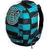ELEMENT Freeloader Backpack: Clothing. Adjustable shoulder straps offer chest strap with buckle closure and convenient zip pocket at right. Element Freeloader backpack. Plaid screen prints. Large Element applique at high front. Front skateboard straps with buckle closures. Front pocket with Velcro flap tab closure and Element embroidery. Side zip pockets with Element patch applique at left. Fleece-lined audio pocket at top with rubber Element headphone exit. Spacious main compartment with wide mouth zip opening. Element logos embossed on zipper pulls. Heavily padded and mesh-lined back panel is quilted with Element logo. Approx dimensions: 14 inch x 20 inch x 9(36 x 51 x 23cm).