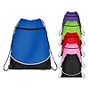 Deluxe Cinch Drawsting Backpack: Clothing. Grey edge with colored pocket and back. Deluxe Drawstring Backpack with front zipper pocket. Made from sturdy 210 Denier and Doby Nylon with black drawstrings and grommet reinforced holes.