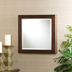 Espresso Square Wall Mount Jewelry Armoire: Home & Kitchen. W x 5.25in. Elegant yet understated, this espresso wall mount jewelry armoire is an ideal solution to keep you organized. Unlike others, this unit is compact and concise which provides the true necessities. Seven double hooks, two earring racks, seven ring holders and an organizer tray for assorted pieces are available within the cabinet. Completed with a beveled mirror on the front, this stylish jewelry storage option is perfect for bedroom, bathroom or entry. 18in. D x 18in.