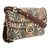 Rafe New York Eugenia Painted Python Double Flap Clutch Clutch Handbags - Brown: Clothing. Tribal print lined interior features a zip pocket and multifunctional slip pockets. Tired of laying low? Spring into fashion attack mode with the dynamic dynasty of this Rafé New York Eugenia clutch! ; Made of python-embossed leather. Holds your wallet, keys, lip gloss and smartphone. Braided shoulder strap with brushed antique brass hardware. Front pocket with turnlock closure. Suede whipstitch detail. Faceted mother-of-pearl signature Rafé tassel. Flat bottom. Top magnetic snap closure. Imported.