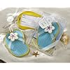 Flip-Flop Luggage Tag in Beach-Themed Gift Box - Set of 50: Home & Kitchen. Why not give your guests the precious gift of time with this unique and playful Kate Aspen favor? The Flip-Flop Luggage Tag is a meaningful memento they're sure to take everywhere they go, along with the wonderful memories you've given them. In a world of look-alike luggage, any distinctive marking on a suitcase makes it easier to identify when you reach your destination, saving time to enjoy your travels. This ever-popular summer sandal looks and feels like a miniature version of the flip-flops you wear! Features and facts: The insole is a soft, sky blue with bright-yellow trim and traction grooves, just like the real thing Clear toe straps meet at the top, where a fanciful, white flower with purple and yellow accents lends a touch of style Flip the flip-flop over to find a yellow sole that holds the information card A thin, clear, stretchable strap secures the tag to the luggage.