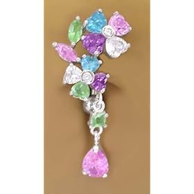 Multi Color Flower Dangle Belly Navel Reverse Top mount Ring body jewelry piercing bar gold plate: Jewelry. This is for 1 brand new belly ring , 14 gauge, 3/8 inch long or 10mm, bar is made of 316L Surgical Stainless Steel .