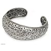 Wide Flower Design Embossed Sterling Silver Cuff Bracelet: Jewelry. It is 1.25 inch wide in the center and curves in and out to have a sleeker fit around the wrist. Intricate floral detailing has been stamped along this curved cuff bracelet.