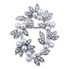 Faux Pearl Flowers and Genuine Marcasite Wreath Brooch for Christmas or Anytime: Jewelry. Pin is about 1 1/2 inch across and made of rhodium plated brass. This delicate looking design uses quality imitation pearls to form tiny flowers and has genuine marcasite trimmed bows. Subtle design for Christmas but perfect for year-round wear. Looks just like a wreath of pearl flowers.