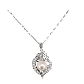 White Freshwater Cultured Pearl and Cubic-Zirconia Heart-Shaped Pendant, 18: Jewelry. In the center of the heart rests a round-shaped white freshwater cultured pearl. The White Freshwater Cultured Pearl and Cubic Zirconia Pendant Necklace is the epitome of classically-elegant jewelry. The detailed heart-shaped pendant rests at the base of an 18-inch cable chain that fastens with a spring ring clasp for security. The swirling heart shape is embellished with sheer cubic zirconia stones that reveal a diamond-like finish. The stones also sprig off the top of the heart shape, delivering additional sparkle. The 10-10.5mm pearl is harvested with a medium-luster and good uniformity.