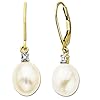 10K Yellow Gold Freshwater Cultured Pearl with Diamond Accent Drop Earrings (0.04 cttw, I-J Color, I1-I2 Clarity): Jewelry.