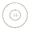 White Freshwater Pearl, Green Jade, and 14K Yellow Gold Beads Necklace, Bracelet and Earrings Set: pearlzzz: Jewelry