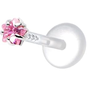 16 Gauge Bioplast Pink Star Gem Labret Monroe: Jewelry. 16 gauge bioplast labret body jewelry.. Sparkling 2mm gem star labret monroe ring set in a 3mm prong setting for a sparkling look. Specifications: 16 Gauge (1.2mm), 5/16 inch (8mm), Flexible Bioplast, 3mm Prong-Setting.