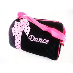 Girls Dance Duffle Bag Hot Pink and Black, Gym, Travel and Sleep-over Bag.: Toys & Games. Two side pockets: one mesh one and they are on either side of the bag. Zipper top tote bag in black with fuchsia polka dots. Features contrasting trim and hot pink and black polka dot bow. Soft, durable and very easy to clean.