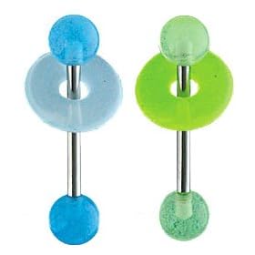 Glow in the Dark LifeSaver tongue ring Green: Jewelry. 316L surgical steel, 14 gauge 5/8 inch straight barbell. Glow in the dark acrylic ends and LifeSaver.