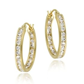 18k Gold over Silver 20mm Channel Set CZ Hoop Earrings: Jewelry. The stones are strategically set facing forward on the inside and outside of the hoops, so that they can be seen from the front. These chic hoop earrings feature sparkling CZ stones, channel-set in 20mm hoops.