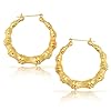 14k Gold-Plated Set of Three Pairs of Bamboo-Style Hoop Pierced Earrings: Jewelry. With these three choices, youll be prepared for any occasion. Haute hoops - Featuring this three-pair set of bamboo-style hoop pierced earrings. Each pair is just a little different. A large round pair, a smaller round pair and a heart-shaped pair. 14k gold-plated.