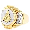14K Gold Two-Tone Onyx Masonic Mens Ring: Jewelry