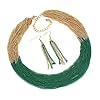 Fancy Goldtone and Green Dipped Multi Chain Two Tone Statement Bib Necklace and Earrings Set Elegant Trendy Fashion Jewelry: Jewelry. Necklace measures 16 inches in length with extender and matching tassel earrings feature wire hooks for pierced ears. This fabulous set features goldtone mutli strand chains dipped in richly colored green. Your set will come to you in a lovely organza bag and makes a fabulous gift or treat for yourself.