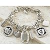G by GUESS Lace Pattern Heart & Ribbon Charm Br: Jewelry. The combo of black, gold and super-sleek charms equal an A-list accessory to wear all day long. Fun, flirty and a touch of rock and roll makes this bracelet the perfect wear-with-everything piece. ? Double golden chain link, black ribbon, assorted charms (gold, pearl, rhinestone).