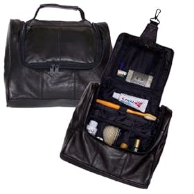 Hanging Travel Mate Toiletry Kit Genuine Leather: Electronics. The Hanging Toiletry Kit is ideal for both men and women. This Hanging Travel Mate Genuine Leather Toiletry Kit is great for travel and gives you an easy way to keep your cosmetics, vitamins, medicine, shaving cream, and toiletries organized! When opened, a neat hook allows you to hang the kit conveniently on a towel rack or door. The Hanging Travel Mate Toiletry Kit features 7 inside mesh pockets with 2 outter zipper pockets which is perfect for items like cotton, cotton swabs, eye drops or nail polish. That's not all! . Also featured is an easy carry handle when the toiletry kit is zipped closed, and a large 10x 5 inch zip pocket across the back. Take our Hanging Travel Mate Toiletry Kit on long or short trips, quick overnight stays, and visits home from college. Buy one for yourself, or purchase it as a gift for someone that you love.