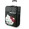 Hello Kitty Black Embossed Patent Carry on Luggage: Toys & Games. This Hello Kitty rolling luggage has a top, side and retractable handle, large zippered exterior pocket, double zipper closure, and bottom foot rests. Sleek and polished looking luggage with stylish embossed design. With interior straps to secure contents, zippered flat pocket, and a vibrant pink lining with black bow pattern.