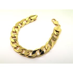 9 inch mens new 13mm 24K Gold plated curb cuban bracelet solid s: Jewelry. then immediately dry the gold item with a soft clean dry cloth.OUR GUARANTEE! It is not possible for us to guarantee that this gold look item will not tarnish , but If this gold look item does lose it's gold colour within 3 months (after following the important care instructions above), simply contact The Bling King to arrange a no fuss replacement. Brand new men's diamond cut curb bracelet. High polished finish, heavy plated with 50 mils of gold . ITEM DETAILS:Width 13mm other thickness available ! Length : 9 other lengths available Weight 50 grams, Clasp : Lobster clawVERY IMPORTANT CARE INSTRUCTIONS PLEASE READ BELOWBecause gold plated jewellery is renowned to tarnish, they need special care to prevent tarnishing. If you follow these easy care instructions your gold item is likely to last a long time. To keep the high polished finish and rich gold look it is essential to keep this gold item dry at all times, which includes wearing the gold item in hot sweaty conditions, and avoid direct contact with aftershave/perfume. You may think that this is a lot to ask but the result will be having an amazing look real gold item that can last a long time.HOW TO CLEAN THIS GOLD ITEM?You can clean the gold item easily with a soft clean damp cloth inch , this will remove any grease or dirt. We sell approx 100/150 of these gold items a week and maybe 1 OR 2 in 100 will tarnish which is truely amazing for gold plated jewellery, and for this very low price who could complain.