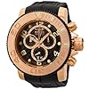 Invicta Mens 0415 Pro Diver Collection Sea Hunter Chronograph Black Polyurethane Watch: Invicta: Watches. A flame-fusion crystal protects the watch dial, and precise Swiss quartz movement ensures accuracy.Pro Diver CollectionPlunge into any horizon using the steadfast guidance of the Invicta Pro Diver. With water-resistance to 984 feet (300 meters), the Invicta Men's Pro Diver Collection Sea Hunter Chronograph Watch lets you explore the deep with a timepiece defined by its durability and brilliant color contrasts. The luminous dial of black carbon fiber shines with gold-toned hands plus glow-in-the-dark, green Arabic numerals (outlined in gold) at the even-numbered hours. Matching moon-like orbs mark the odd-numbered indices. Three black subdials, encircled by white perimeters, serve as 60-second, 30-minute, and 10-hour chronographs. Bridging the two smaller subdials on top, a white arch spans the days of the week. The large subdial below displays a divided two-digit date window. The unidirectional gold bezel features engraved Arabic numerals in increments of 10 from 20 to 50. A ribbed circumference of black polyurethane offsets the stainless steel 18k gold-plated case and bezel. The black polyurethane strap fastens securely with a buckle clasp. Stylishly classic, internal workings are forged with variations of either Swiss chronograph or 21-jewel automatic movements and willingly navigate in depths up to 300 meters.