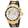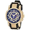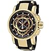 Invicta Mens 0913 Reserve Chronograph Black Dial Rubber Watch: Invicta: Watches. The luminous chronograph function delivers 60-second, 30-minute and 1/10th of a second sub-dials, which are all protected by a synthetic sapphire crystal. Effortlessly matching any suit, this trendy Invicta Men's Reserve Chronograph Black Dial Rubber Watch, with its cool, bold design, will elegantly go with anyone's style. This timepiece kicks off with a brushed and polished 18k gold ion-plated stainless steel case and a black ion-plated stainless steel bezel, screw-down crown and pushers. The bezel also offers white Arabic numerals every 10 seconds and a tachymeter on the inner bezel. The watch's black dial features gold-toned hour markers and luminous, gunmetal hands powered by reliable Swiss quartz movement. A black rubber strap with 18k gold ion-plated stainless steel accents secures the watch to the wrist and a trusty buckle clasp makes sure it stays there.