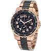 Invicta Mens 1206 II Collection Chronograph Stainless Steel Watch: Invicta: Watches. The dial, which is protected by a scratch-resistant flame-fusion crystal, also offers three chronograph sub-dials and a date display window between the 4 and 5 'o clock positions. A unique blend of black ion-plated stainless steel and 18k rose gold elements, the Invicta Men's 1206 II Collection Chronograph Stainless Steel Watch is a sophisticated timepiece that will have passersby doing a double take. It begins with a 45mm black ion-plated stainless steel case and an 18k rose gold-plated stainless steel unidirectional bezel, which features a textured coin edge and black Arabic numerals and stick markers every five seconds. The right side of the watch features a black ion-plated stainless steel crown and pushers. These elements surround a black dial with luminous rose gold-toned hour markers and hands, which are powered by reliable Swiss quartz. The watch's black ion-plated stainless steel bracelet straps the watch to your wrist, while a fold-over clasp with a safety makes sure it stays there.