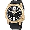 Invicta Mens 1429 II Collection Chronograph Black Dial Leather Watch: Invicta: Watches. The dial, which is protected by a flame-fusion crystal, also offers three chronograph sub-dials and a date display between the 4 and 5 'o clock positions. With a bold black dial dressed in rose gold and a stylishly stitched leather band, the Invicta Men's Chronograph Black Dial Leather Watch is certain to make a statement on the wrist. The watch kicks off with a circular 46mm rose gold-plated stainless steel case with a textured coin edge and a prominent crown and pushers on the right side. These rose gold-plated stainless steel elements hug a deluxe black dial with white hour markers and Arabic numerals at the 3, 6, 9, and 12 'o clock positions. A black leather bracelet with contrasting white stitching along the top and sides straps this watch to the wrist, while a reliable buckle clasp ensures that it stays there.