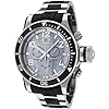 Invicta Mens F0062 Russian Diver Collection Chronograph Stainless and Black Rubber Watch: Watches. Strikingly oversized with its complementing Signature crown cap and surgical stainless steel or titanium construction, the truly bold Russian Diver proudly possesses the distinction of being Invicta’s largest timepiece. Sporty enough for weekend adventures yet polished enough for work wear, the Invicta Men's Russian Diver Collection Chronograph Watch impresses with its sleek gray mother-of-pearl dial, two-tone black-and-silver stainless steel bracelet, and low-key charm. Boasting the precision of Swiss quartz movement for accuracy and reliability year after year, this timepiece is built to last. It features silver-toned Arabic numerals at all even positions; 60-second, 30-minute and 12-hour subdials; and a black unidirectional bezel. Its durable mineral crystal combines with water resistance to 984 feet (300 meters) to guard against wear and tear, while a fold-over clasp with safety provides a secure fit and easy on/off. For added convenience, this watch arrives in a bright yellow Invicta box for easy storage and gift-giving.Russian Diver CollectionOriginally created to honor the 1959 watch commissioned by the Russian Naval Fleet, Invicta’s Russian Diver commands attention. Yet, evolving to accommodate demand, these patented designs now include models fit for any woman’s bidding.