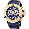 Invicta Mens 5515 Subaqua Collection Gold-Tone Chronograph Watch: Invicta: Watches. When you have finished setting the watch, the crown must then be pushed in and screwed back in tightly. Striking in blue and gold, the luxurious Invicta Subaqua Collection Chronograph Watch stands out from other men's watches. This stunning timepiece is crafted with brightly polished gold-tone stainless steel, which is featured on the unidirectional bezel and screw-down crown with protective cover. Framed by a tachymeter, the blue watch face features luminous hands and indexes, a date display at the four o'clock position, and chronograph functions with 60-second, 30-minute, and 1/10-second subdials. This Invicta watch has a blue rubber strap and precise Swiss-quartz movement. It is water resistant to 1,640 feet (500 M).Subaqua CollectionLed with expert engineering, and always ready to face the depths, no feat or occasion will ever be too great for Invicta’s Subaqua to handle. The sheer magnitude of this mighty timepiece is superbly executed with surgical-grade solid stainless steel, Swiss automatic movements, and multiple color options of ionic plating. Managing up to 500 meters of water, finished off with a unidirectional rotating bezel, integrated shock resistance, and Invicta’s luminous Tritnite? hands, the Subaqua is the diver’s definitive in negotiating any adventure by sea or by land. Screw Down Crowns: Many Invicta watches are equipped with a screw down crown to help prevent water infiltration. This is most common on our Diver models. In order to adjust the date and/or time on such a watch, you must first unscrew the crown before you can gently pull it out to its first or second click stop position. To do this, simply rotate the crown counterclockwise until it springs open. Not doing so will cancel the water resistance of the watch and will void all warranties from the manufacturer. Overall, this process should not require a lot of effort or force.