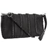 Cris Cris Jannell Convertible Clutch / Cross Body Color: Black: Clothing. Color/Finish: -Colorful fabric lined interior. 5920BLK Color: Black Pictured in Almond Features: -Exterior front has a decorative leather tab secured by a hidden magnetic snap.-Exterior rear has a large open pocket secured by a magnetic snap.-Exterior zippered pocket under front flap.-Top zipper access into the interior of bag.-Interior cell phone pocket and two credit card slots.-Cloth dust bag for storage when bag is not being used. Construction: -Constructed of 100pct leather. Dimensions: -One-half inch wide detachable shoulder strap with a 25.5'' drop.-Dimensions: 5'' H x 10.5'' W x 0.5'' D.