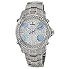 JBW-Just Bling Mens JB-6213-A Jet Setter inch Gold Five Time Zone Diamond Watch: Just Bling: Watches. The four push buttons are securely fixed to the watch with screws on the bezel. The sheer magnitude of this mighty timepiece from Just Bling is superbly executed with a total of 234 diamonds on the watch and an exclusive five time zone Swiss movement. The oversized round 56-millimeter 18k gold plated all stainless steel case is offset by a diamond accented designer edge bezel. The stylish combination of diamonds and gold accents on half of the band and gold tone all stainless steel band measuring 26 millimeter is firmly fixed to the case lugs with bold screws on each side. The uniquely designed pave dial with crystal accents features four mother-of-pearl sub dials for five time zone movement and 10 luminous hands. The contrast blue second hand exhibits the unique signature style of Just Bling’s design. The bold gold look with five push buttons two on left and three on right for Tokyo, Paris, New York, LA and regular time adjustments respectively gives this timepiece a rich and functional look. This watch is water resistant up to 5 ATM (50Meters/165 feet).