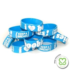 Keep-A-Breast 1 Inch I Love Boobies Bracelet Blue/White: Everything Else. 100% of the net proceeds from the wholesale sale of this item are donated to The Keep A Breast Foundation, a worldwide non-profit organazation. By purchasing this product from the merchant LOSERKIDS only, you are supporting The Keep A Breast Foundation.