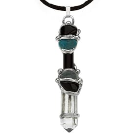 Keep Me Safe Baby Wand Pendant: Susan Buzard: Jewelry. These are very unique. Keep Me Safe The combination of stones chosen for the Keep me Safe are to aid in travel on land, air or sea. To protect anyone who could face danger, illness or negativity such as travelers, pilots, soldiers, children, or anyone in everyday life. Also in helping guard Children from their fears.Turquoise was used by the American Indians for protection against physical injury and harm. At all times and over the world, Turquoise has been worn as natural protection against the powers of darkness. Turquoise is regarded today as the protective stone of pilots, air crews and other occupational groups who are exposed to an especially high degree of risk. It also aids the body to remove viral infections and has an anti-inflammatory response. Aquamarine is a wonderful stone to calm the mind, bringing focus and clarity in any given situation. It is also protective while traveling over sea or by air. Aquamarine is a protective stone that can be worn to relieve pain and ensure good health. Aquamarine is a stone of courage which accelerates the intellectual reasoning process, releases fears and calms nerves. Black Tourmaline deflects negative energies in all circumstances. It can protect you against debilitating diseases and will aid the immune system. Black Tourmaline helps to clear the aura and surrounding environment of negative vibrations. Clear Quartz deflects negativity and enhances positive changes in the wearer. Direct from the designer. Gemdrop Pendants are approx 3/4 to 1 inch in diameter. Each Item is indiviually made, so no 2 pieces are exactly alike.