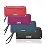 Kenneth Cole Reaction Womens Spotted Patent Clutch w/ Strap: Clothing. A fashionable spotted print design and patent finish highlights the exterior of this wallet. Complete your ensemble with the right accessories by Kenneth Cole Reaction. This wallet includes: seven card slots, one ID window, two bill folds and one zippered coin pocket.
