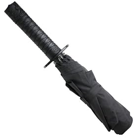 Kikkerland Mini Samurai Sword Umbrella: Home & Kitchen. Our Samurai umbrella offers all the same traits but will only defend you from a mean rainstorm. The Samurai sword is a traditional bladed weapon from Japan used for defense and known for its strength and elegance of design. Uniquely designed by Materious with a sleek Samurai sword handle and Pongee canopee.