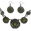 Ladies Flora inch Flower Necklace and Earring Set in Sparkling Olive Green: Jewelry