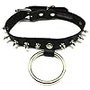 Ladies Black Leather Fetish Collar Choker Chrome Ring: Clothing